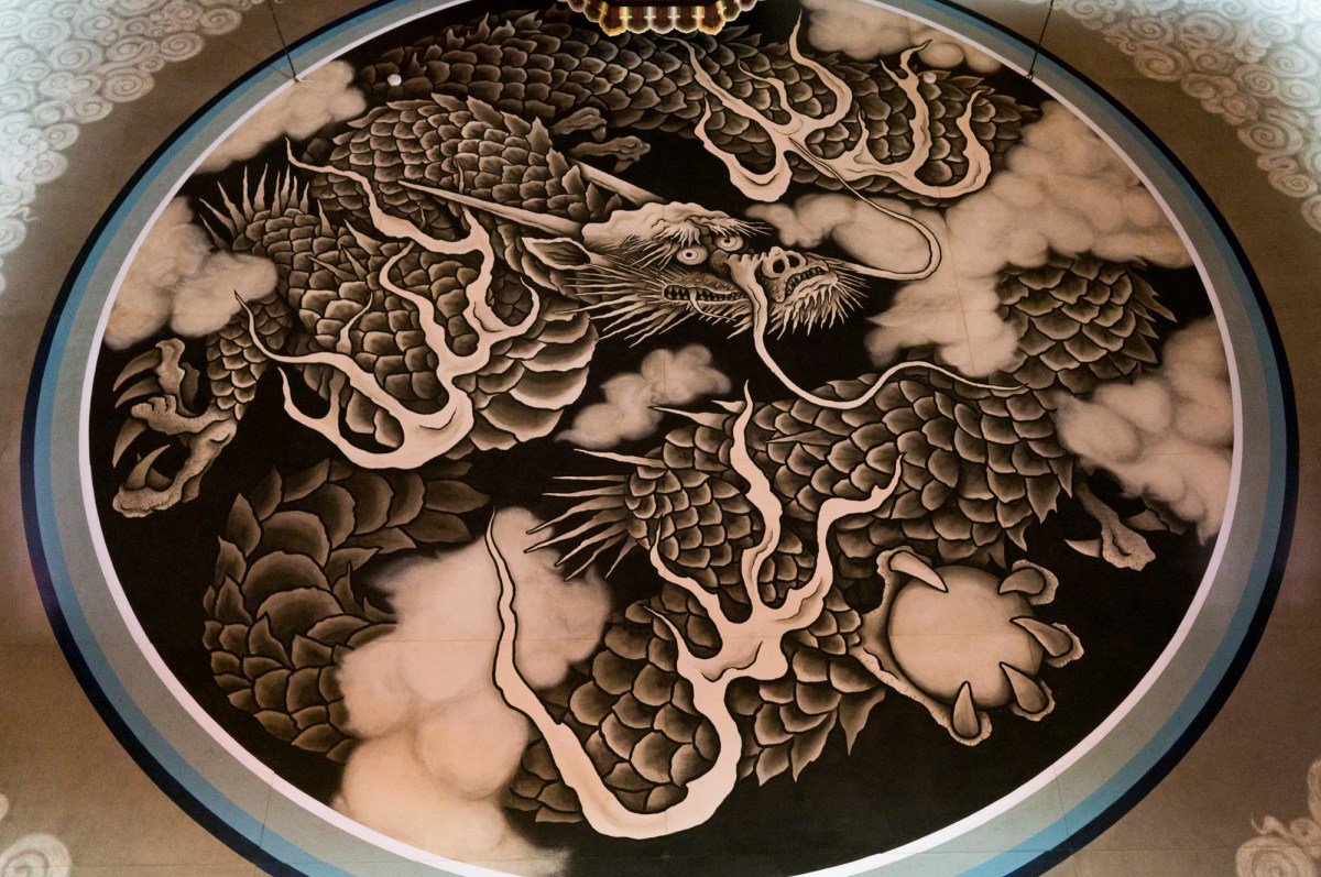 A very impressive dragon on the ceiling of the Buddha hall, Kencho-ji
