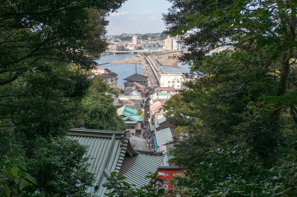 A view on the main street and bridge from Enoshima’s shrine