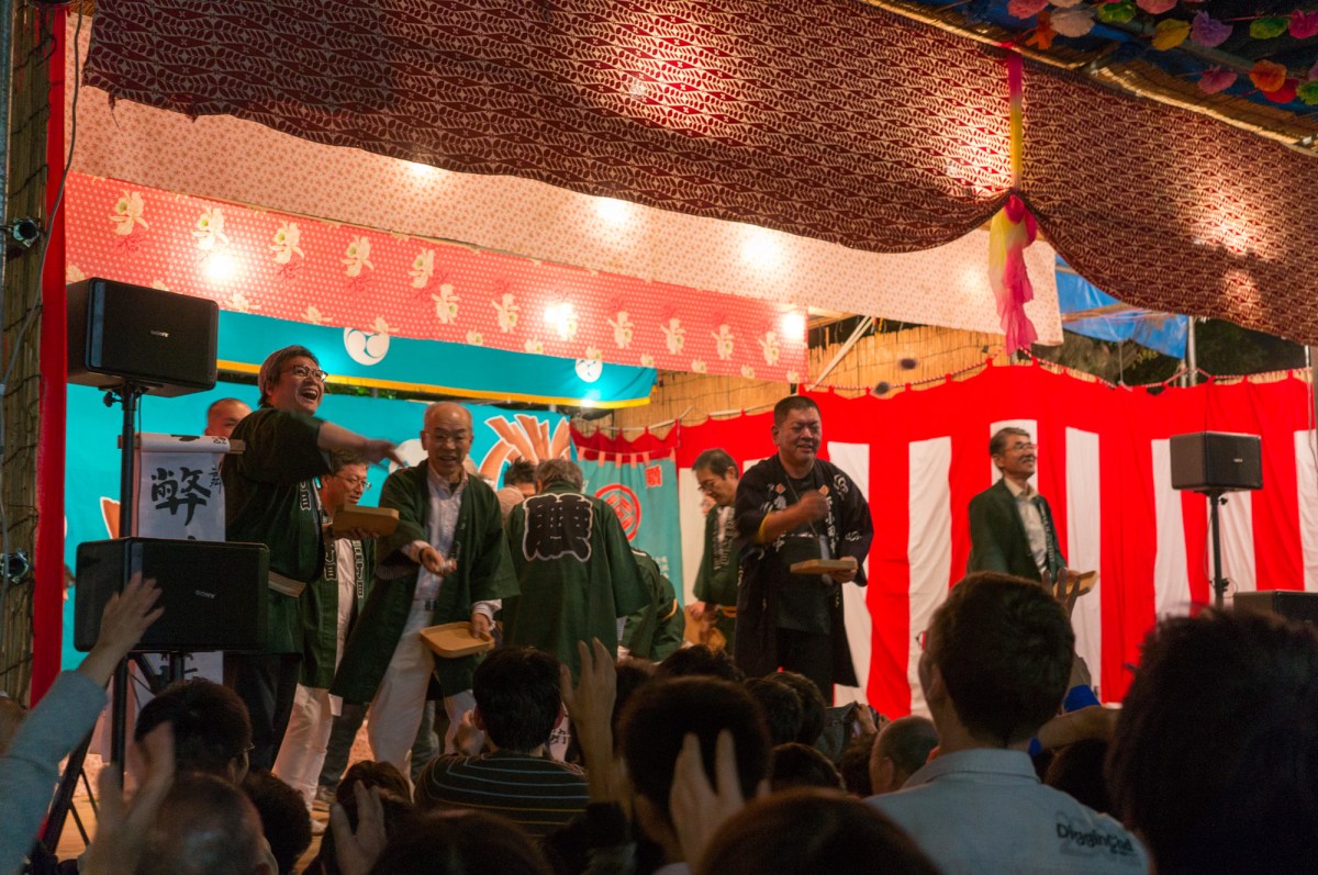 At the end the organisers throw sticky rice balls (mochi) to the visitors