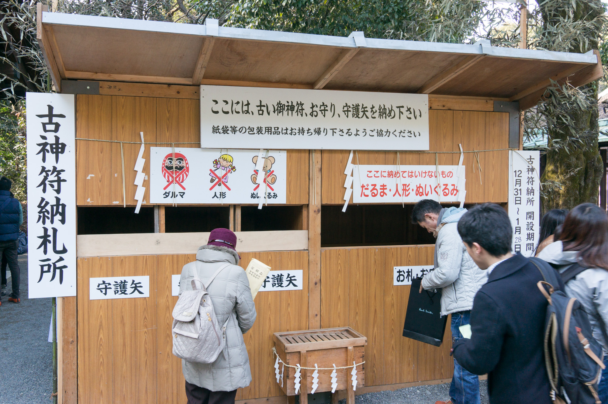 DSC09032 ← Previous Next → A collection bin for the disposal of spiritual items from last year, you can’t just throw them into the trash. The shrines burn them all with a cleansing ceremony.